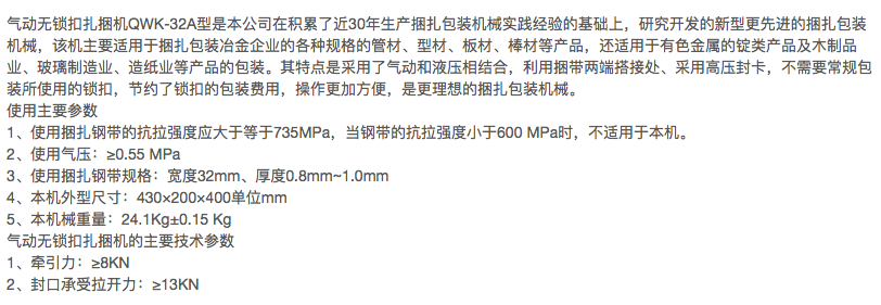 气动钢带无锁扣扎捆机......